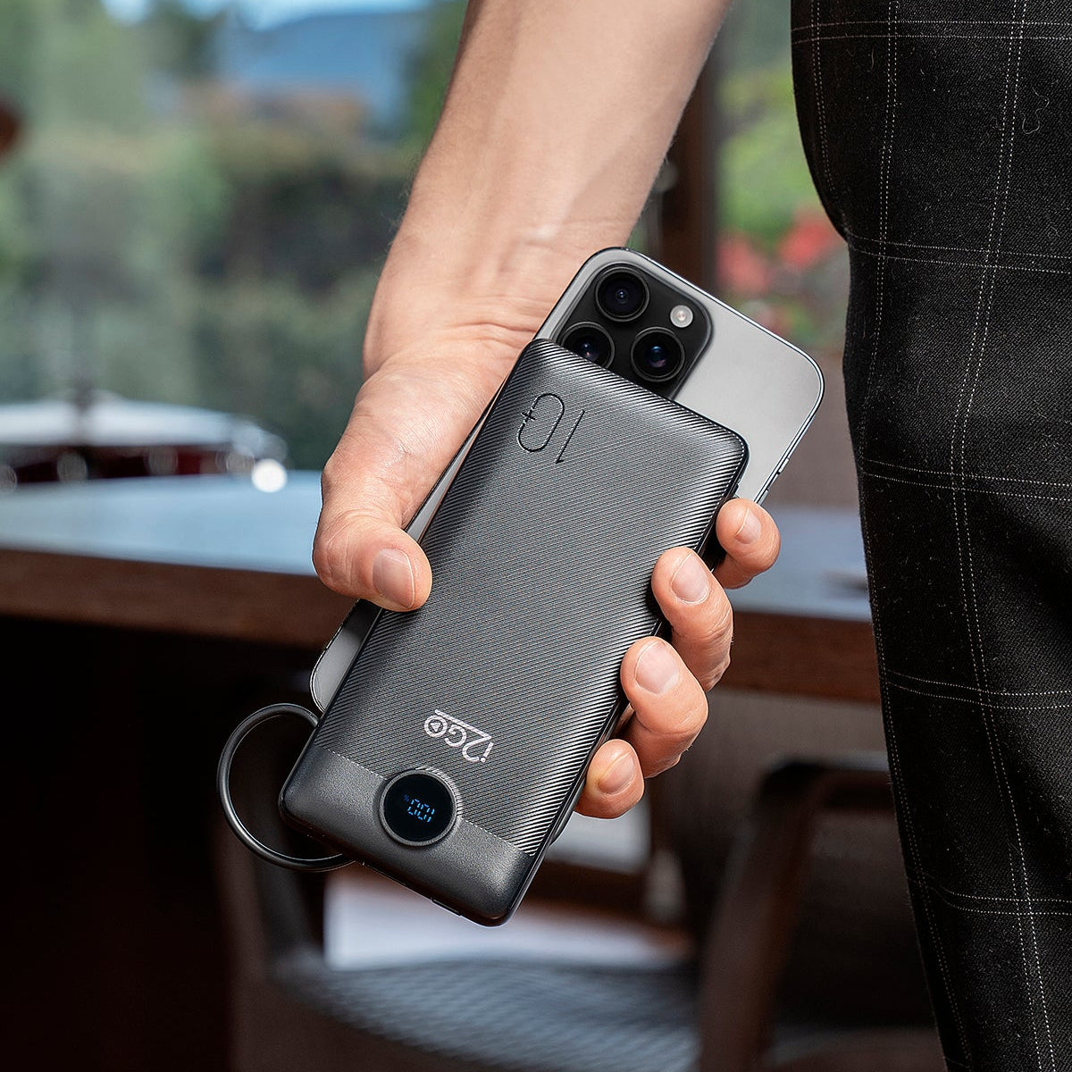 Batería portátil de 10000mAh con cables integrados y enchufe de pared incorporado para mayor practicidad. Permite cargar hasta 4 dispositivos al mismo tiempo con carga rápida. Diseño compacto y ultradelgado ideal para viajes. Compatibilidad universal con smartphones y más.